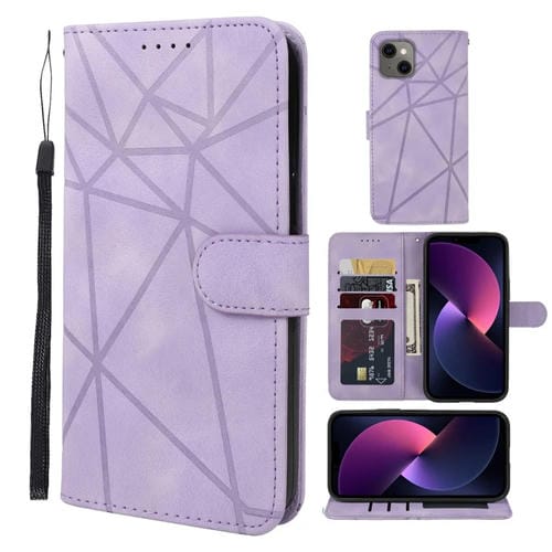 Funda de Cuero para Teléfono iPhone 14 Skin Feel con Líneas Geométricas (Púrpura)