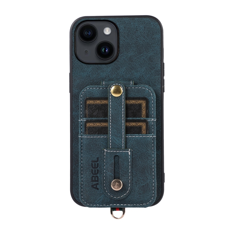 Funda para iPhone 15 Abeel Litchi Texture Card Bag PU Phone Case (Azul)