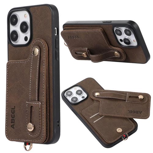 Funda para iPhone 15 Abeel Litchi Texture Card Bag PU Case (Caqui)