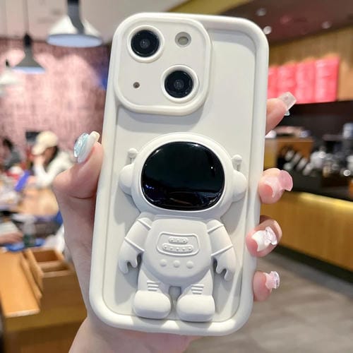 Funda para teléfono iPhone 15 Astronaut 3D Relief Holder TPU + PC Cobertura Total (Blanco)