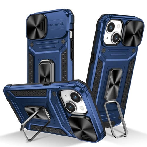 Funda para iPhone 15 Camshield Robot TPU Hybrid PC Phone Case (Azul)