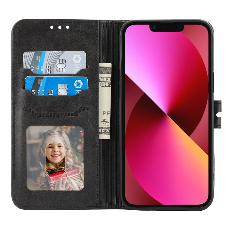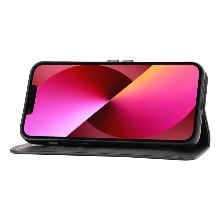Funda para iPhone 15 Flip Cuero Happy Cat Pattern En Relieve (Negro)