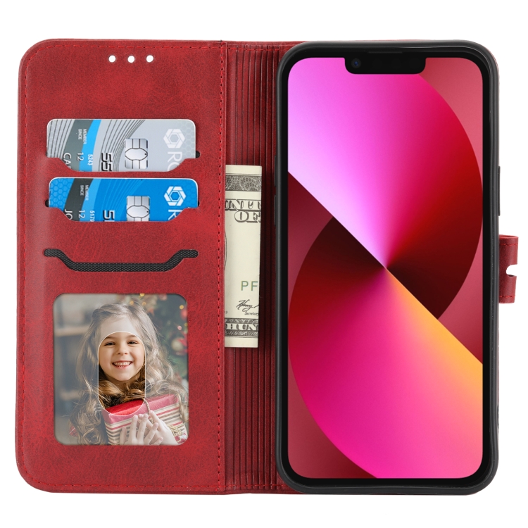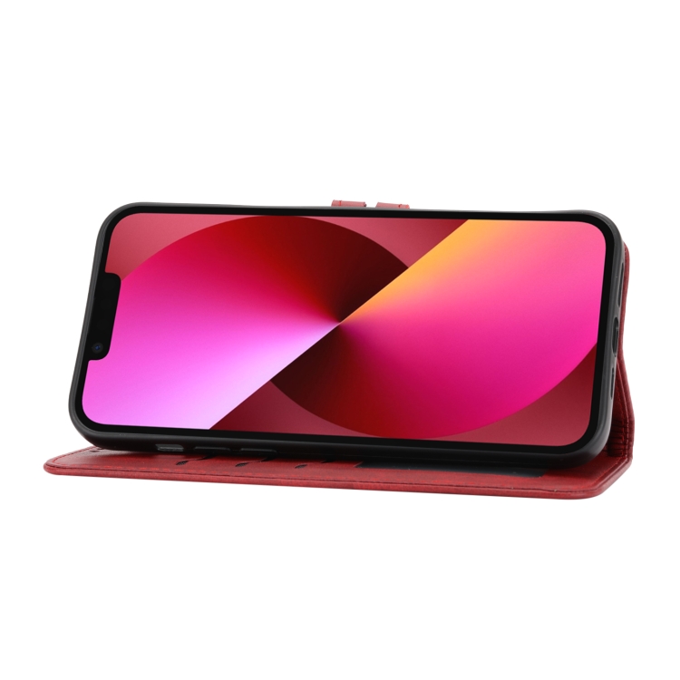 Funda para Teléfono iPhone 15 Happy Cat Pattern Flip Cuero (Rojo)