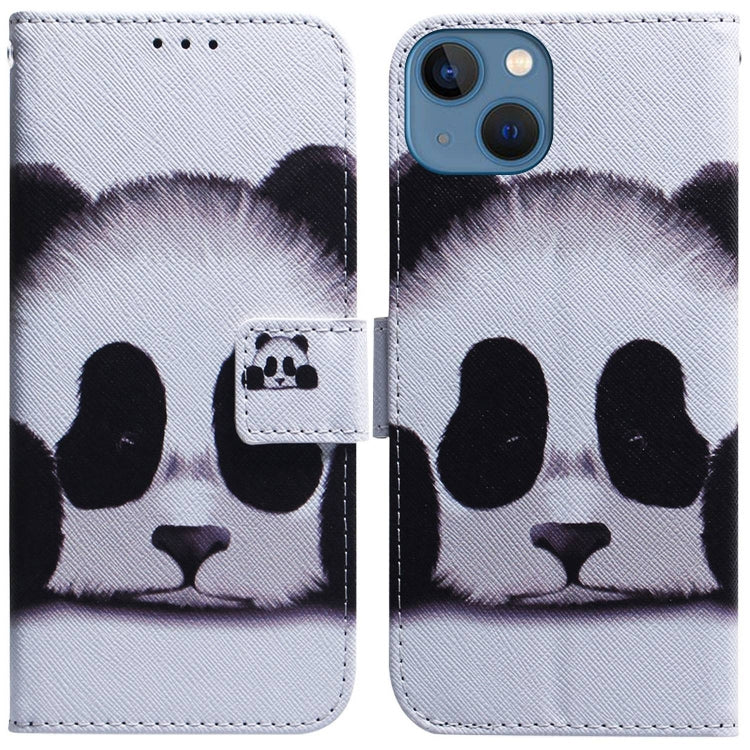 Estuche de Teléfono para iPhone 15 Cuero con Tapa de Dibujo Coloreado (Panda)