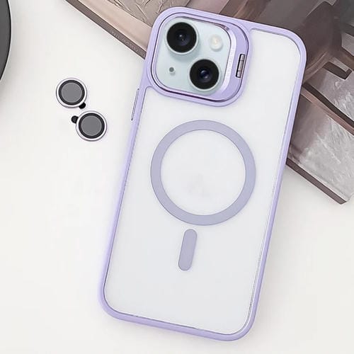 Estuche para Teléfono iPhone 15 TPU Híbrido Acrílico Magsafe con Soporte y Película para Lentes (Púrpura Claro)