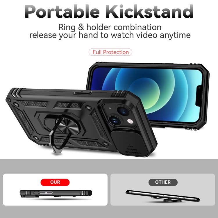 Estuche para teléfono iPhone 15 con soporte deslizante Camshield (Negro)