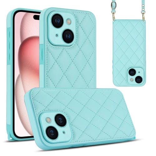 Estuche para Teléfono iPhone 15 con Textura Rómbica y Cordón Doble (Verde)