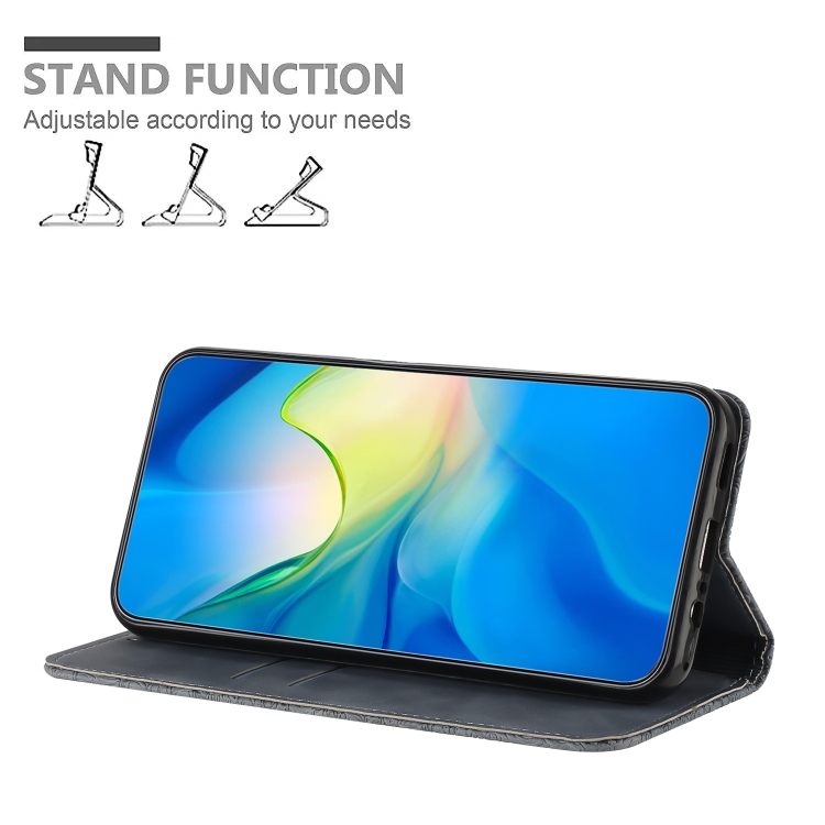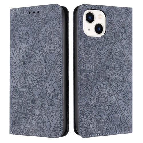 Estuche para Teléfono iPhone 15 Cuero Adsorción En Relieve Étnico (Gris)