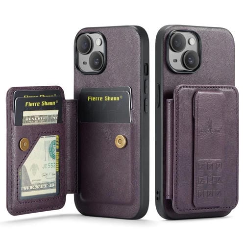 Funda para teléfono Fierre Shann iPhone 15 Oil Wax con tarjetero de cuero de vaca (Púrpura)