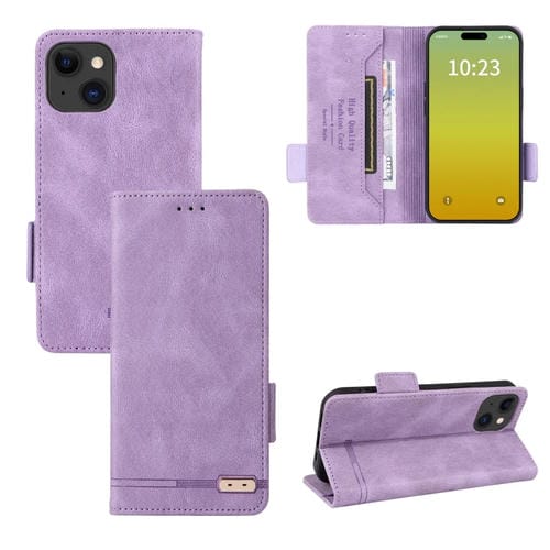 Funda para iPhone 15 Cuero con Cierre Magnético (Púrpura)