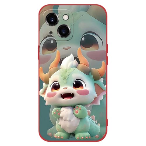 Funda de Teléfono iPhone 15 Silicona a Prueba de Golpes (Roja) (Dragón Verde)