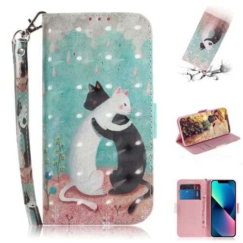 Funda de Teléfono iPhone 15 Cuero con Tapa Horizontal Color 3D (Gato Blanco y Negro)