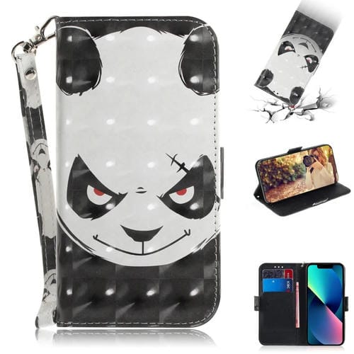 Funda de teléfono iPhone 15 cuero tapa horizontal color 3D (Oso Enojado)