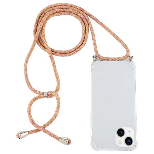 Funda para iPhone 15 TPU Transparente a Prueba de Golpes Cuatro Esquinas con Cordón (Naranja Púrpura)