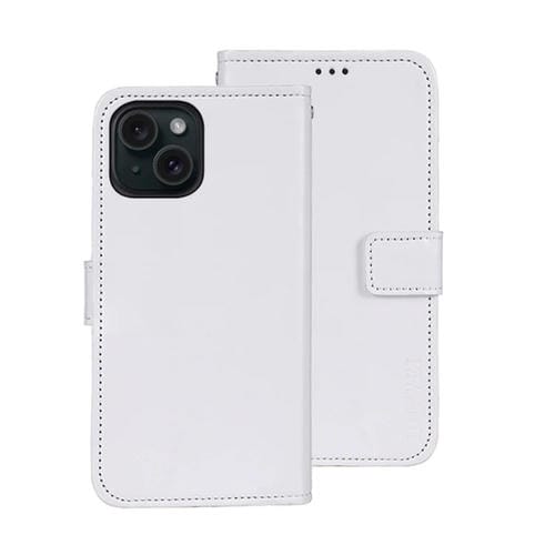 Funda para Teléfono Idewei iPhone 15 Cuero Textura Crazy Horse con Soporte (Blanco)