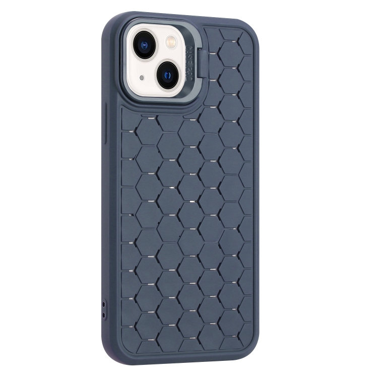 Funda para Teléfono TPU para iPhone 15 con Soporte para Lente Radiante de Panal (Azul)