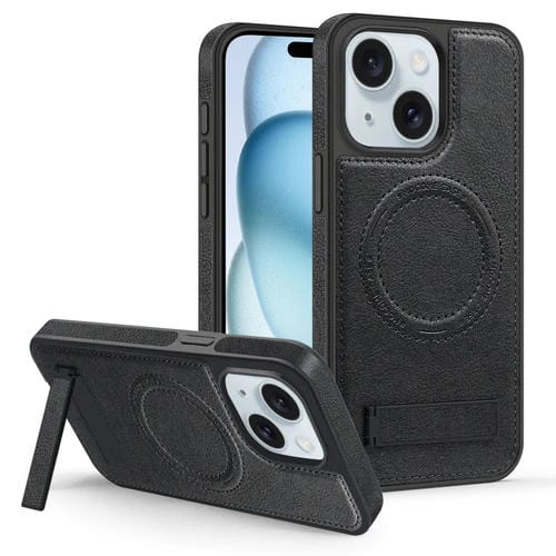 Funda para Teléfono iPhone 15 Magsafe PU con Soporte Multifunción (Negro)