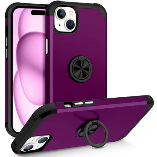 Funda para Teléfono iPhone 15 L2 Magnética con Soporte de Anillo Giratorio (Púrpura Oscuro)