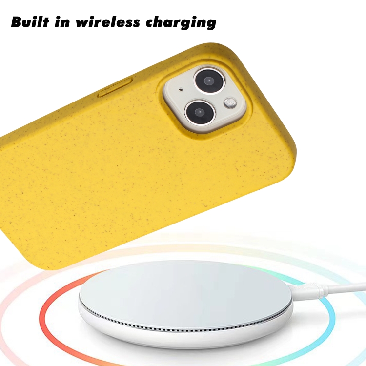 Funda para Teléfono iPhone 15 Material de Paja Magnético Magsafe de Trigo + TPU (Amarillo)