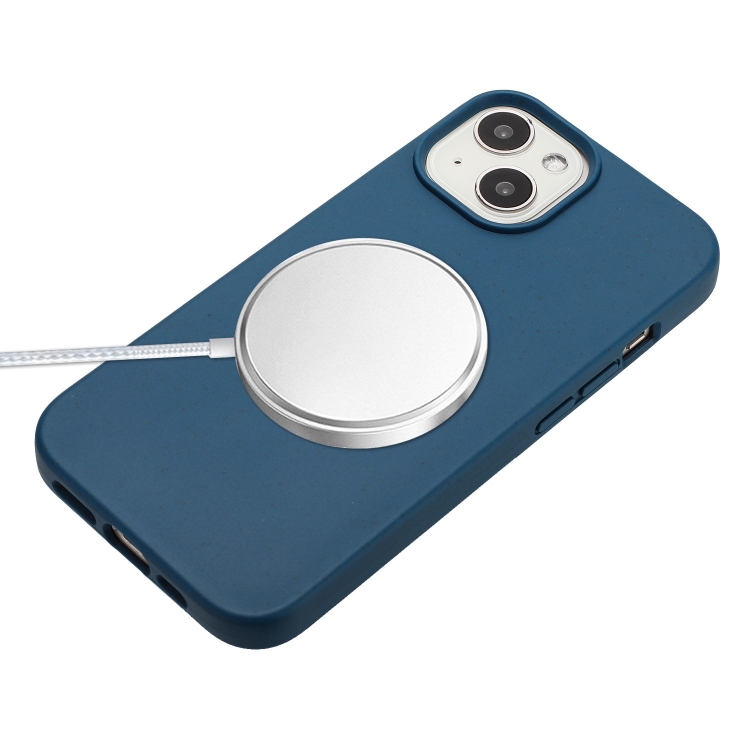 Funda para Teléfono iPhone 15 Material de Paja Magnético Magsafe de Trigo + TPU con Cordón (Azul)