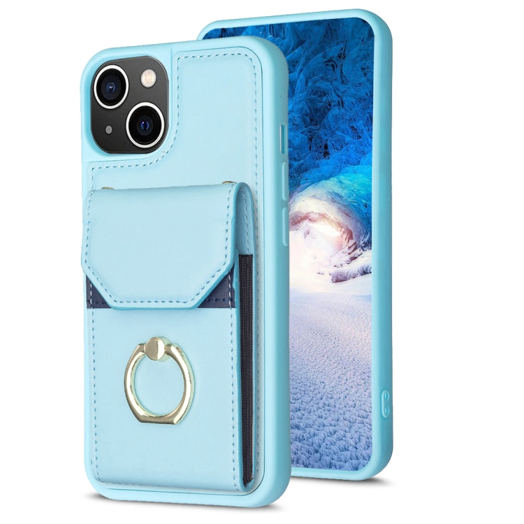 Funda para Teléfono Bf29 para iPhone 15 Plus con Soporte para Anillo y Bolsa para Tarjeta (Azul)