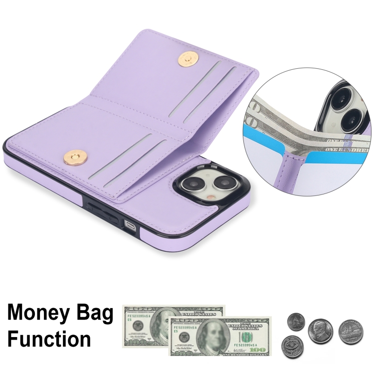 Estuche para Teléfono iPhone 15 Plus con Soporte para Anillo y Tarjeta Antirrobo Rfid (Púrpura)