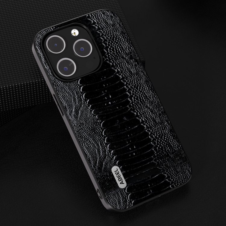 Funda de teléfono Abeel Serie Weilai para iPhone 15 Plus de cuero genuino (Negro)