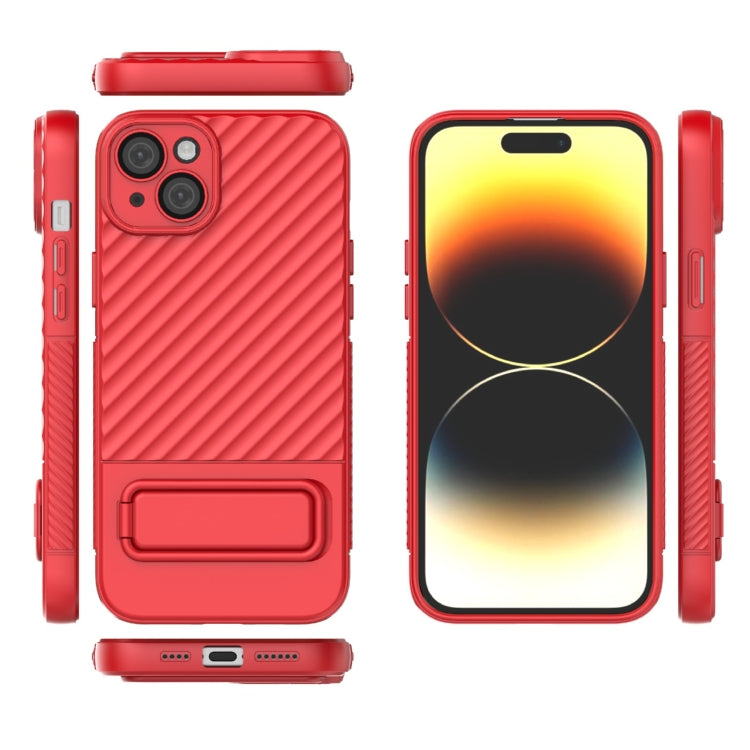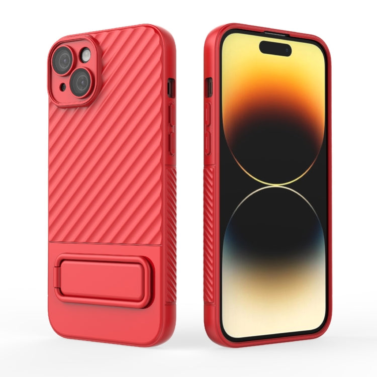 Funda para Teléfono TPU iPhone 15 Plus Textura Ondulada Película para Lentes (Rojo)
