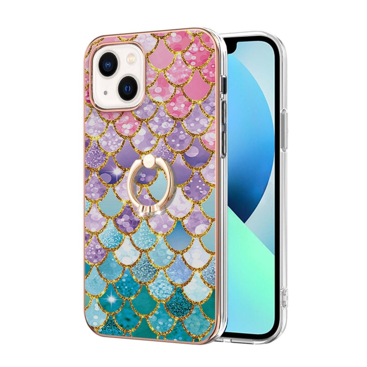 Estuche TPU para iPhone 15 Plus Patrón Galvanoplastia Imd a Prueba de Golpes con Soporte Anillo (Escamas de Colores)