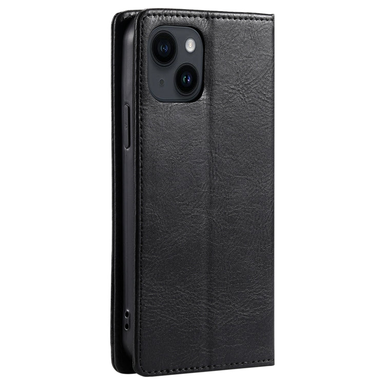 Funda de teléfono Ttudrch para iPhone 15 Plus con protección RFID cuero magnético textura retro (Negro)