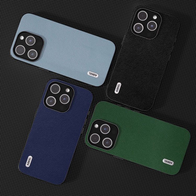 Funda para iPhone 15 Pro Abeel Black Edge Cuero Genuino Azul Real