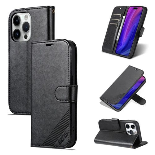 Funda Flip para iPhone 15 Pro Azns Textura de Piel de Oveja Cuero (Negro)