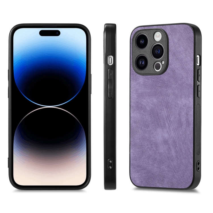 Funda para iPhone 15 Pro Enkay PC con Piel de Cuero Retro y Película de Vidrio Aluminio Silicio (Púrpura)
