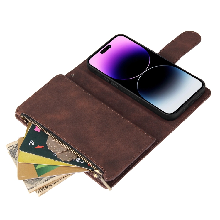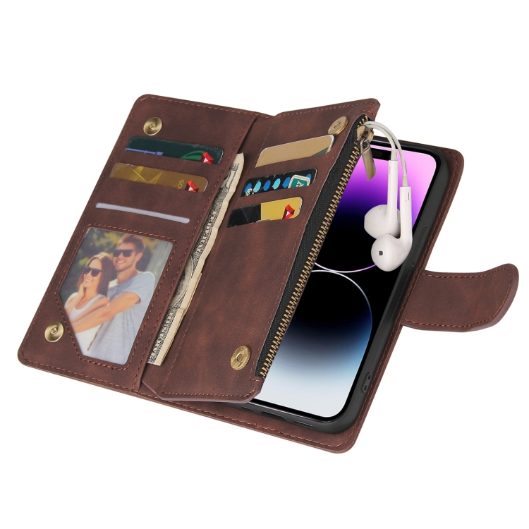 Funda para iPhone 15 Pro Cuero con Billetera MultiTarjeta Multifuncional (Café)