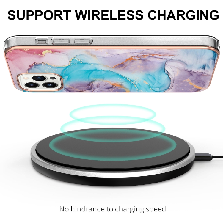 Estuche TPU para iPhone 15 Pro Galvanoplastia Patrón Imd a Prueba de Golpes (Mármol Azul de la Vía Láctea)
