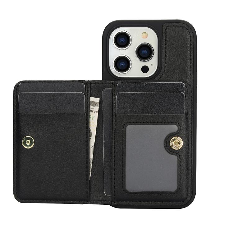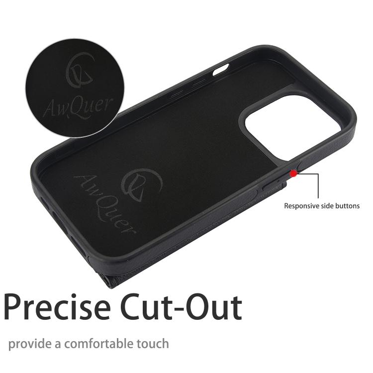 Funda para iPhone 15 Pro Max Awquer Cuero Tapa Horizontal Tarjetas Soporte (Negro)