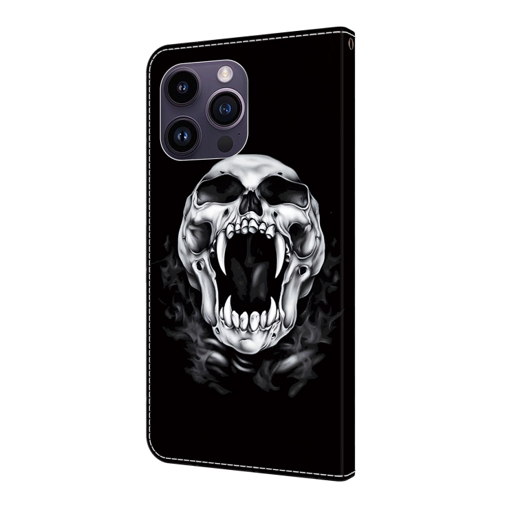 Estuche para Teléfono iPhone 15 Pro Max Cuero Pintado con Cristales Calavera