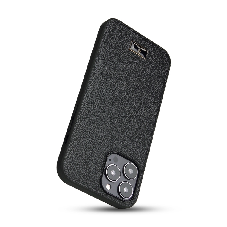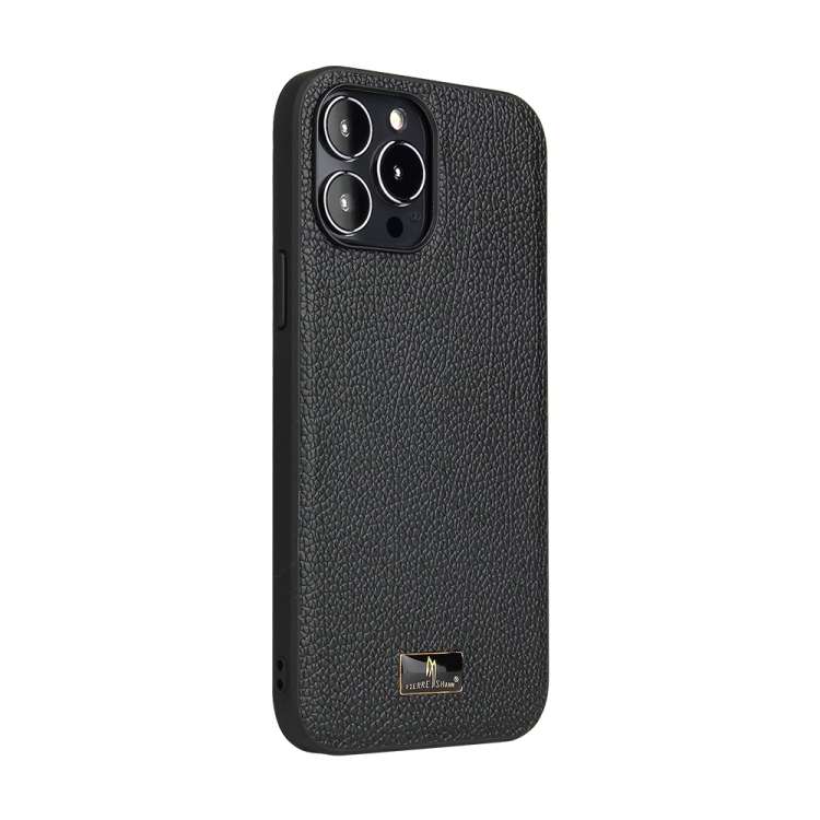 Funda para iPhone 15 Pro Max Fierre Shann Leather Texture Tapa Trasera (Lychee Black)
