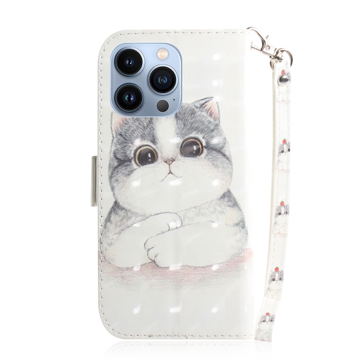 Funda para iPhone 15 Pro Max Cuero con Tapa Horizontal 3D Gato Lindo
