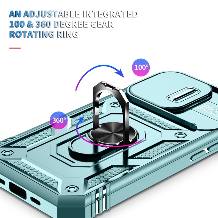 Funda de teléfono iPhone 15 Pro Max con Soporte Deslizante Camshield (Verde)