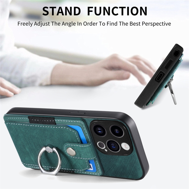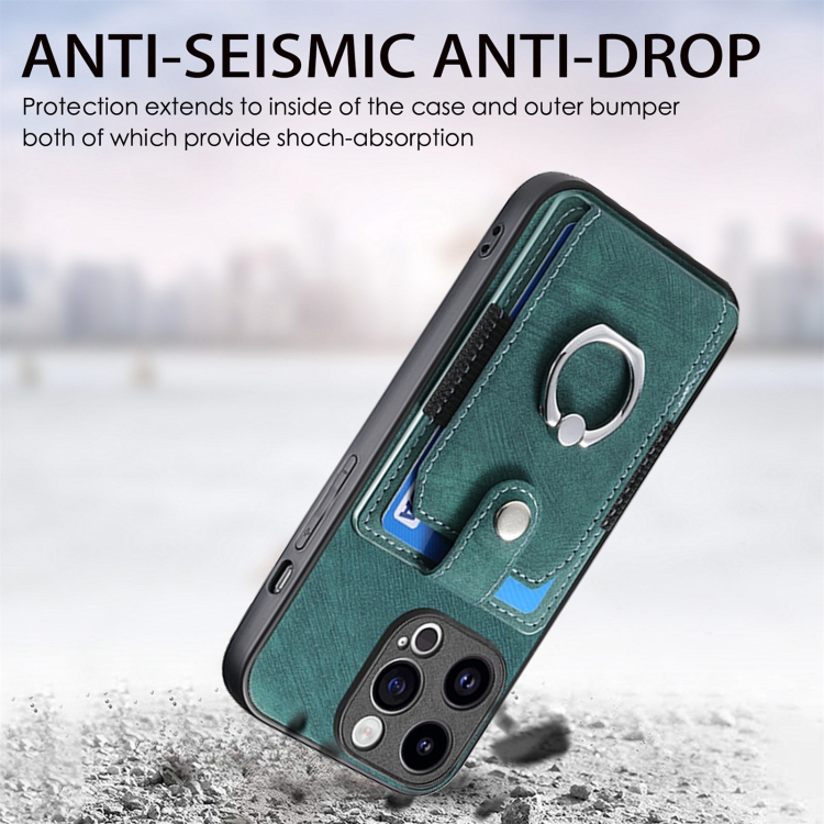 Funda para Teléfono iPhone 15 Pro Max con Billetera, Tarjeta y Anillo (Verde)