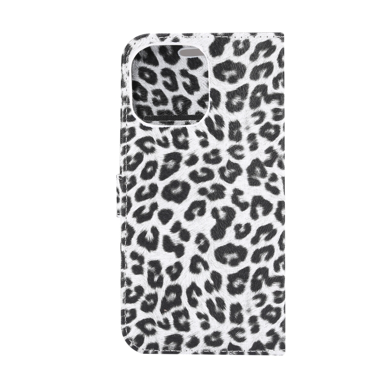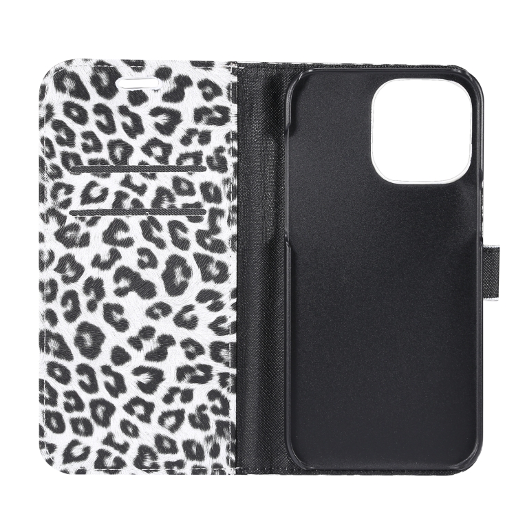 Funda para Teléfono iPhone 15 Pro Max Cuero con Tapa Horizontal Patrón de Leopardo (Blanco)