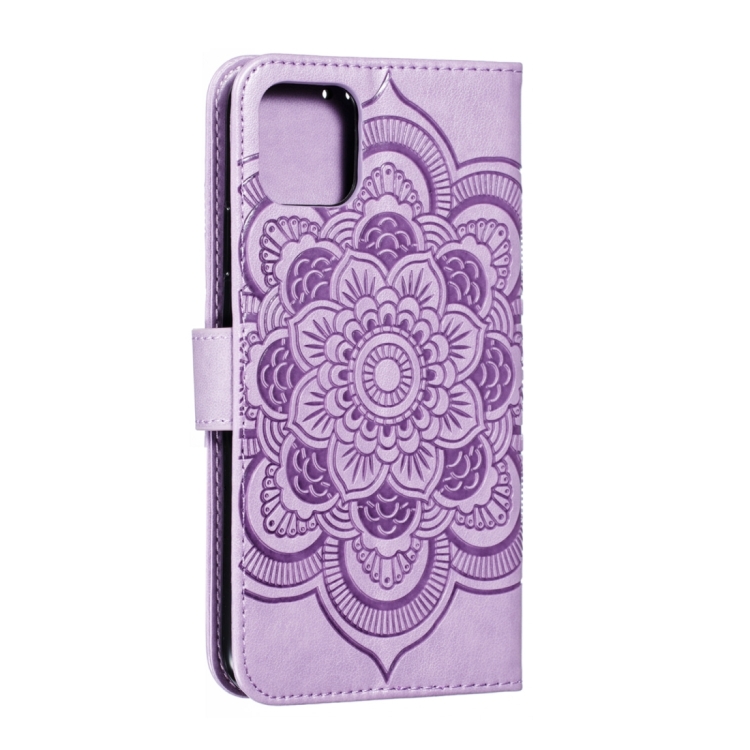 Funda para Teléfono iPhone 15 Pro Max Cuero Tapa Horizontal Patrón Mandala (Púrpura)
