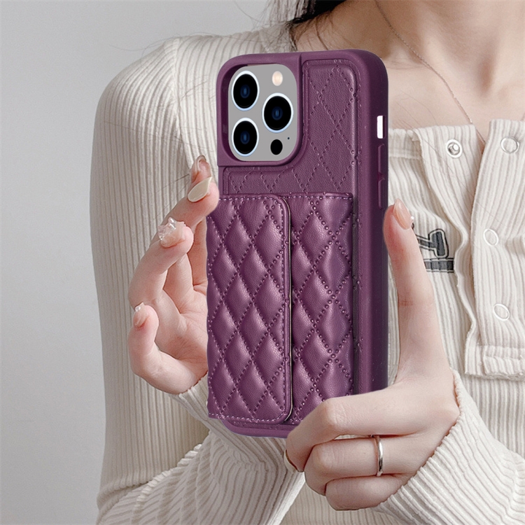 Funda de Cuero Para iPhone 15 Pro Max Horizontal Wallet Rhombic (Púrpura Oscuro)