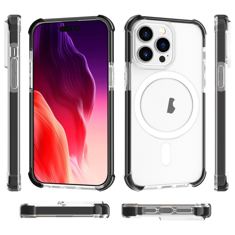 Estuche de teléfono iPhone 15 Pro Max Magsafe acrílico magnético a prueba de golpes (Negro Transparente)