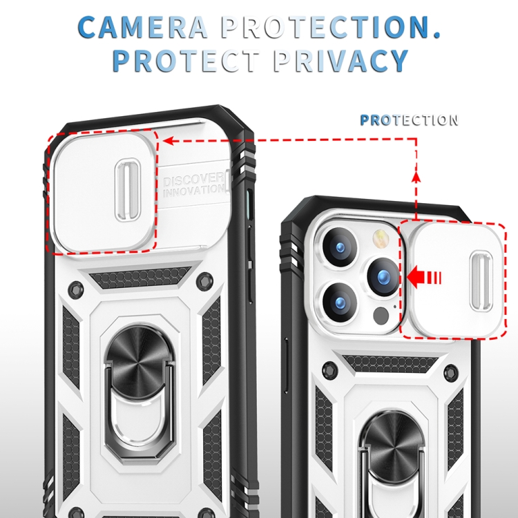 Funda para iPhone 15 Pro Max Sliding Camshield Holder Blanco y Negro