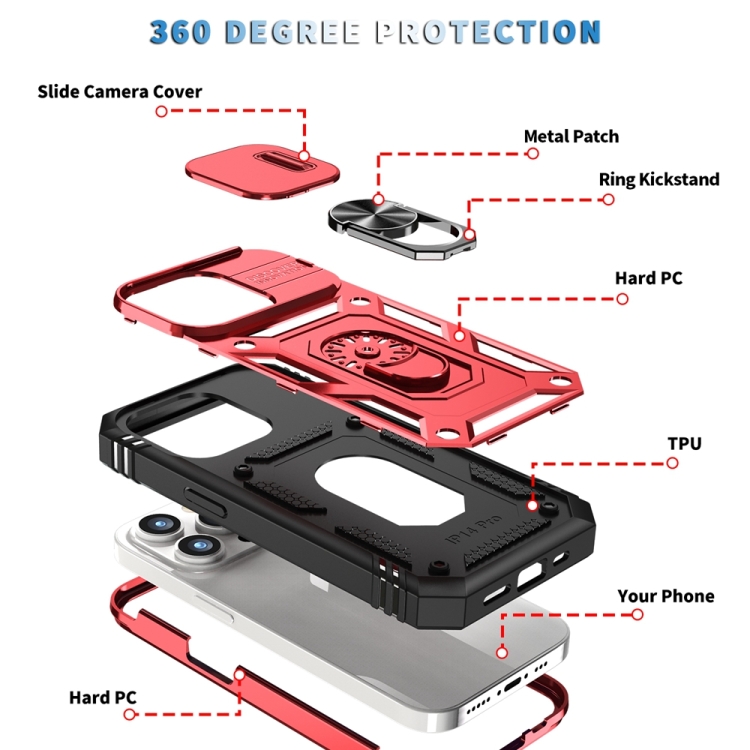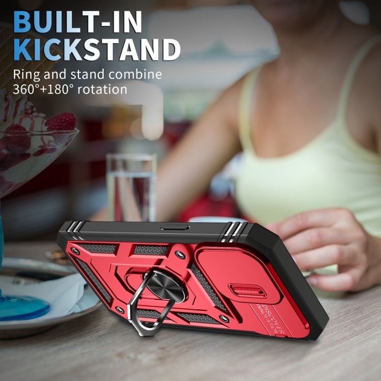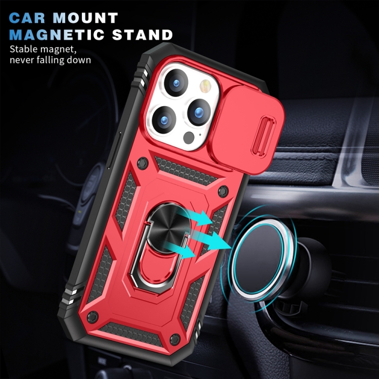 Funda para iPhone 15 Pro Max Sliding Camshield Holder (Rojo + Negro)