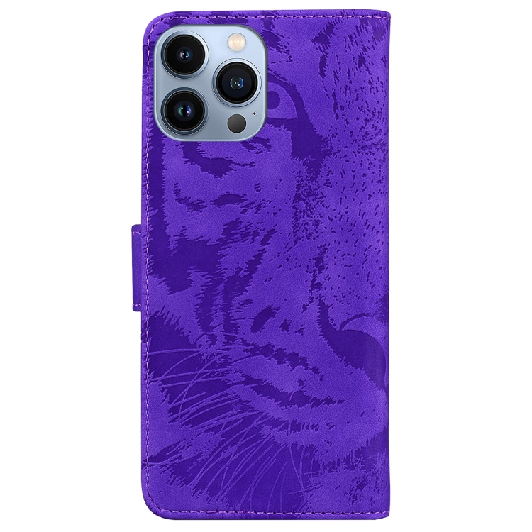 Funda de Cuero para iPhone 15 Pro Max Tiger Embossing Pattern (Púrpura)