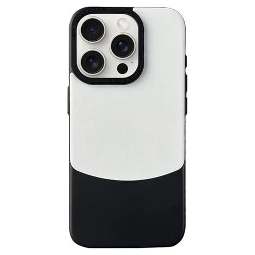 Funda para iPhone 15 Pro Napa Texture PC y Cuero para Teléfono (Panda Black)