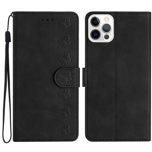 Funda de Teléfono iPhone 15 Pro Siete Mariposas Cuero En Relieve (Negro)